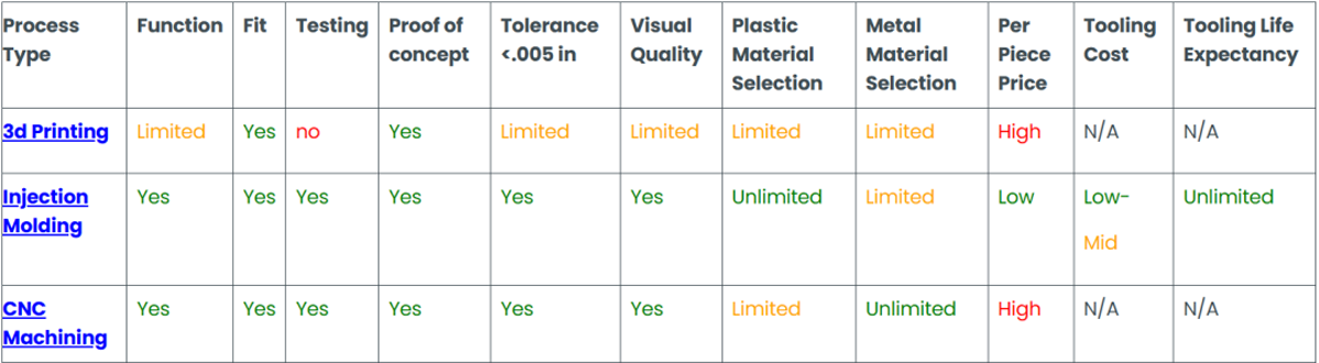 Consider the following chart when deciding which Rapid Manufacturing service